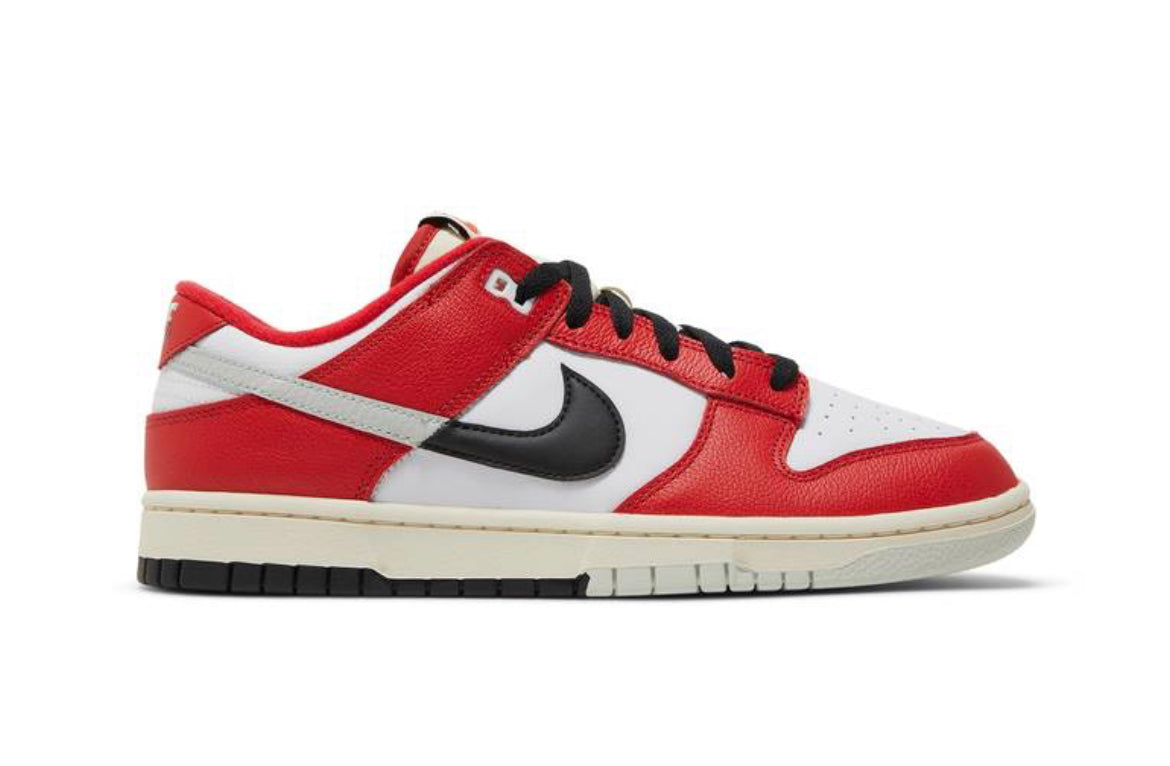 The Nike Dunk Low Chicago Split boasts a fierce colorway combo of University Red, Black, Light Silver, and Challenging conventional aesthetics, this Dunk Low model remixes a classic silhouette with a split color design, creating a bold contrast that demands attention.